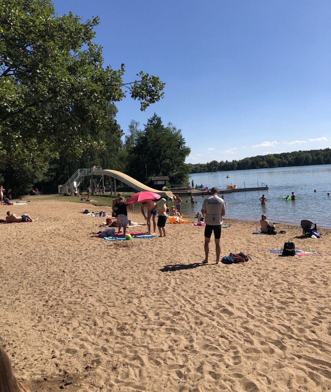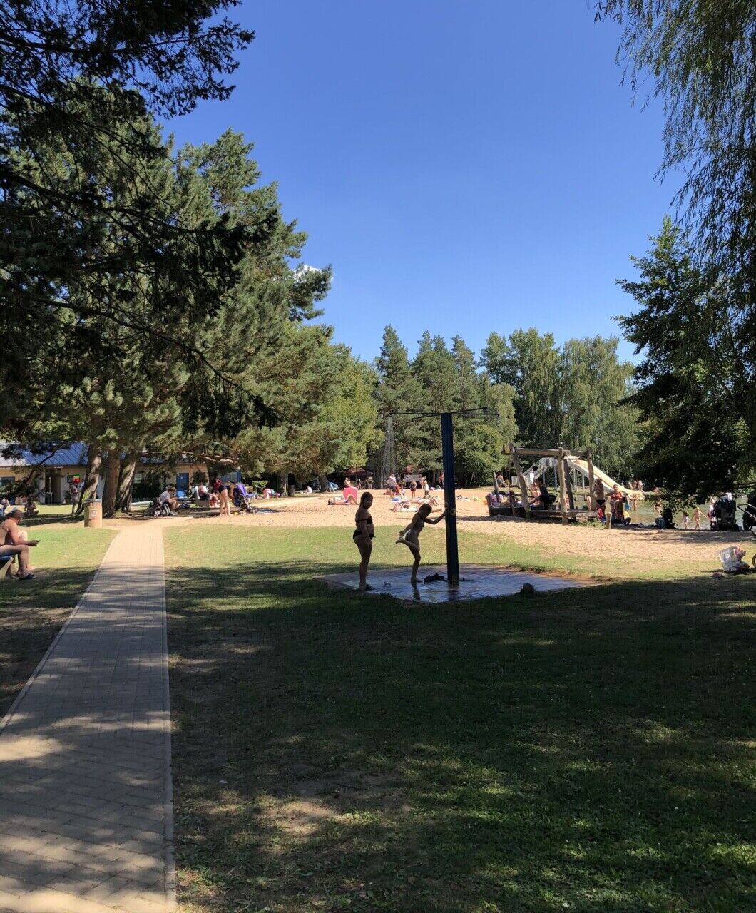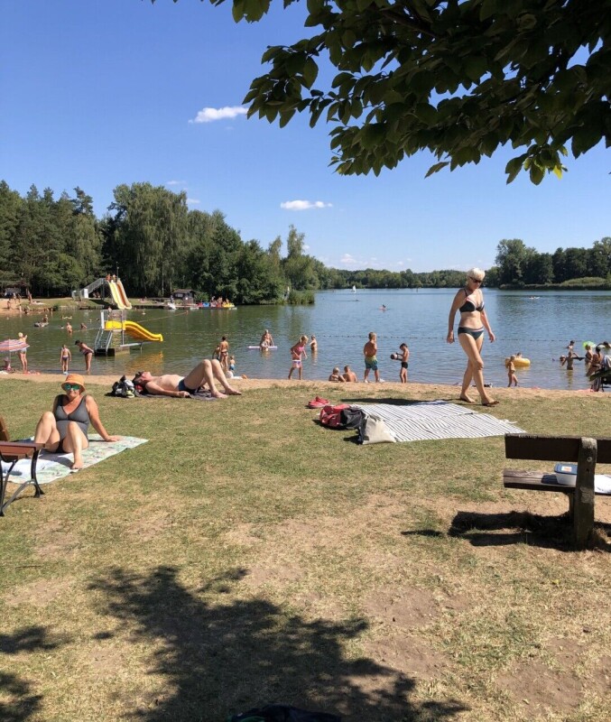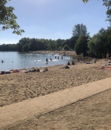 Naturistická pláž je součástí kempu s koupalištěm. Je oddělena od textilní, kempové části. Horní stinná část pláže je zatravněná a stít tvoří vzrostlé stromy. Najdete tu nejen upravenou písčitou pláž s pozvolným klesáním dna, ale i lavičky nebo kiosek. Voda díky podloží bývá čistá a pláž je svým uzpůsobením vhodná i pro rodinnou rekreaci. Kiosek stojí rovnou u vchodu na pláž a okénko má otevřené i do strany natur pláže. Toalety a sprchy nejdete cca 50 m od vstupu na pláž. Pláž je zpoplatněna denním vstupným, jako celý areál. Pokud jste v kempu ubytovaní, je pláž pro vás volně přístupná.